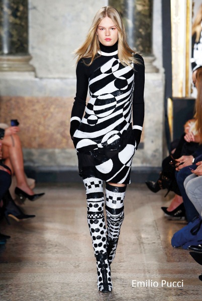 Sztuka nieustannie inspiruje kreatorów mody. Tej jesieni w wielu kolekcjach króluje ponadczasowe, kontrastowe zestawienie czerni i bieli, ale w nowym wydaniu! Projektanci połączyli ze sobą te dwa kolory tak, że przyjmują one najróżniejsze geometryczne formy. Całość niezwykle mocno nawiązuje do op-art, czyli wizualizmu, którego pionier i główny przedstawiciel – Victor Vasarely – tworzył dzieła komponowane głównie z biało-czarnych elementów, dających wrażenie głębi i ruchu.