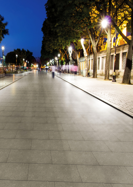 Monochromatyczna kompozycja z płukanej kostki Malta (fot. 1), czy nawierzchnie z płyt Megaton (fot. 2) lub 50² -(fot. 3) – Buszrem nawiązują do współczesnych trendów i wprowadza w specyficzny klimat charakterystyczny dla mocno zurbanizowanego krajobrazu.