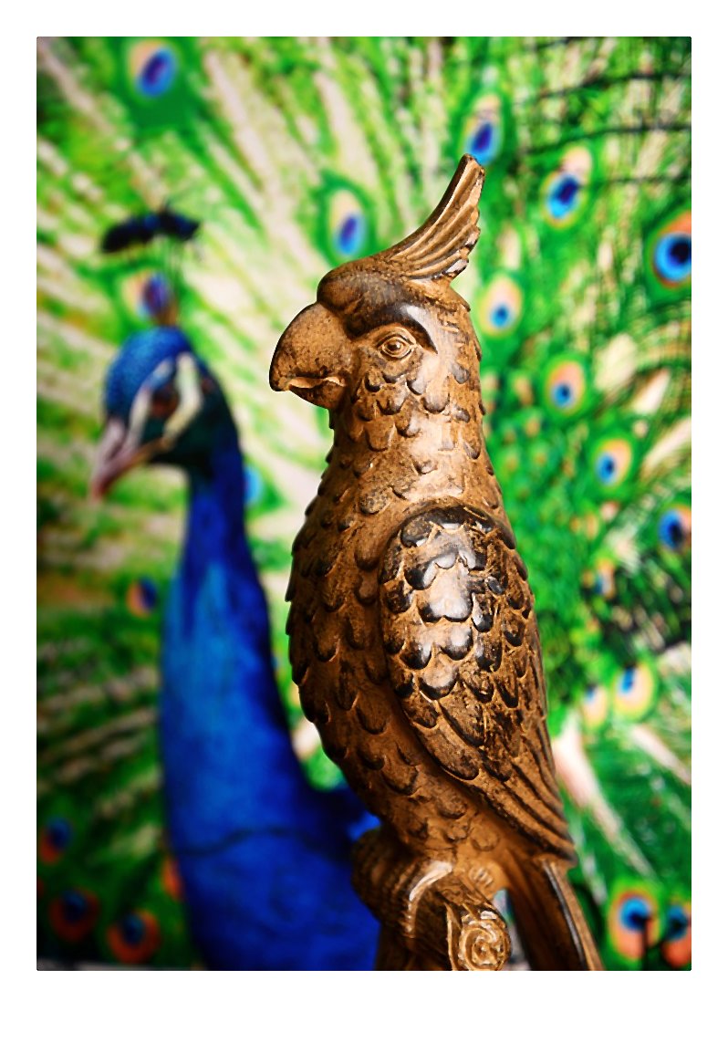 W salonie korespondującym z atmosferą dżungli nie może zabraknąć kolorowych dodatków. Na przykład ciekawych pamiątek z podróży bądź zakupionych w Polsce drobiazgów, np. figurek egzotycznych zwierząt, oryginalnych lampionów czy ładnie oprawionych zdjęć z naszych wypraw.