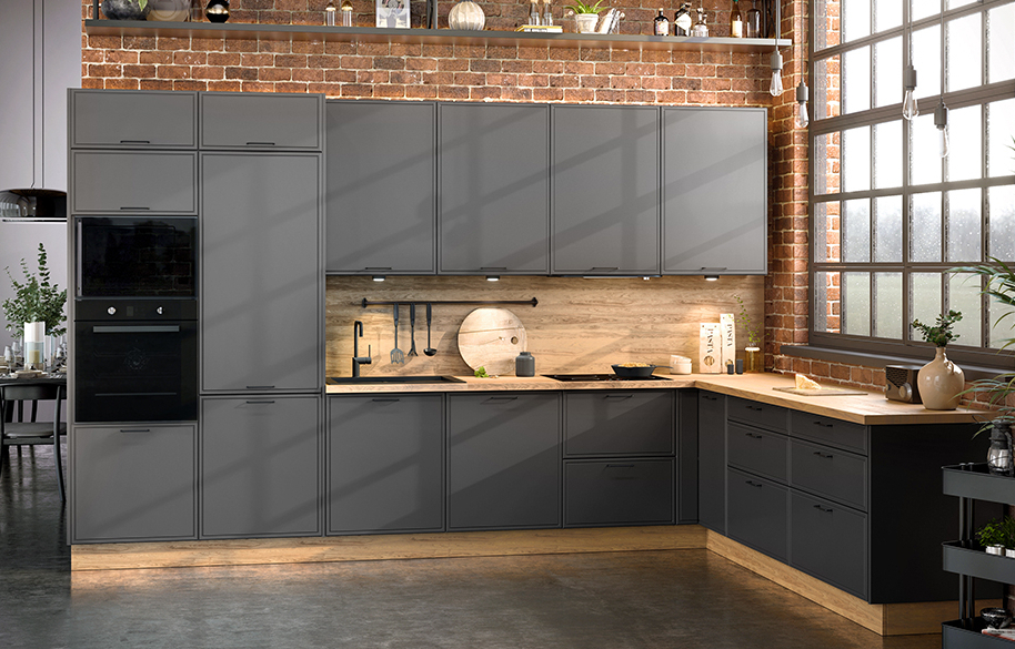 Bezpiecznym rozwiązaniem jest paleta barw neutralnych, może jednak pora na bardziej odważne wybory. Modne w tym sezonie czerń, granat czy mniej jeszcze upowszechniony, ale tak samo urzekający intensywnością barwy – bazalt, wyglądają niezwykle atrakcyjnie na matowych powierzchniach kuchennych frontów. Zabudowa meblowa prezentuje się elegancko, a dzięki oprawie drewna zyskuje ciepła i ponadczasowy charakter, dzięki czemu będzie cieszyć oko przez kolejne sezony.