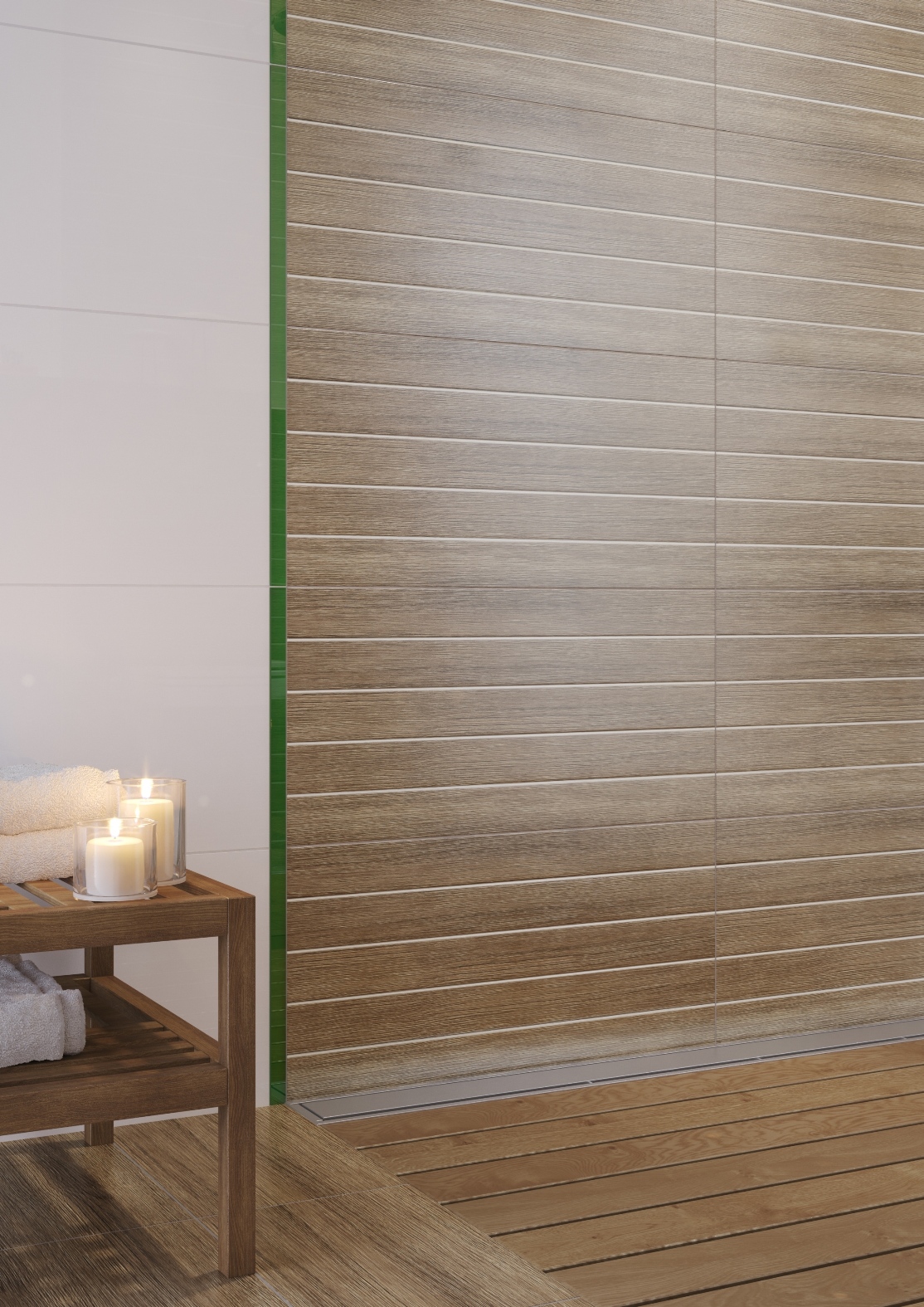 Duży format (29,7×60 cm) płytek ściennych White Glossy Structure, Wood Brown Satin Structure, White Glossy i Wood Brown sprawi, że ułożone poziomo, optycznie powiększą łazienkę, a mniejsza ilość fug przyczyni się do łatwiejszego utrzymania czystości w łazience. Kolekcja Nature daje nam wybór pomiędzy dwoma rodzajami płytek podłogowych w formacie 33,3×33,3 cm – White Glossy dla miłośników klasycznej bieli w błyszczącym wydaniu oraz Wood Brown Satin dla tych, którzy preferują matowy rysunek drewna. Kolekcję uzupełniają elementy dekoracyjne w odcieniach zieleni: Nature Green Inserto Leaf, Nature Green Inferto Velvet A oraz Nature Green Inserto Velvet B (29,7×60 cm), które w połączeniu ze szklanym elementem dekoracyjnym Grass Light Green Border New (2×60 cm) mogą stworzyć nietuzinkową dekorację – bambusowe pędy doskonale komponujące się z rysunkiem drewna na płytkach.