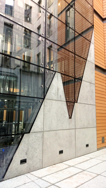W ciągu ostatnich dwóch dekad estetyka w architekturze zderzyła się mianowicie z ekonomią, ekologią i koniecznością oszczędzania energii. Pozostawienie surowej, betonowej fasady w nowo projektowanym budynku nie wchodzi już w grę ze względu na obowiązujące normy i przepisy. Konieczność utrzymania odpowiednio niskich współczynników przenikania ciepła wymusza okładanie fasad grubą warstwą izolacji termicznej. O ile z punktu widzenia ekonomii użytkowania budynków jest to zjawisko ze wszech miar pożądane – o tyle jeśli chodzi o kształtowanie fasad – mocno utrudnia sprawę. Nie czyni jej jednak niemożliwą. Jeśli bowiem nie możemy pokazać w elewacji konstrukcji z surowego betonu – możemy wykorzystać zalety które daje nam ściana osłonowa i technologia fasady wentylowanej.