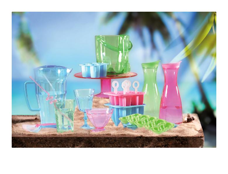 W kolekcji znajdziemy: zestawy kolorowych kieliszków, karafki, kubełki na lód, dzbanki ze znacznikami, ozdobniki do kieliszków w kształcie papug i serduszek oraz shakery ? czyli wszystko czego potrzebujemy do serwowania orzeźwiających letnich drinków.
