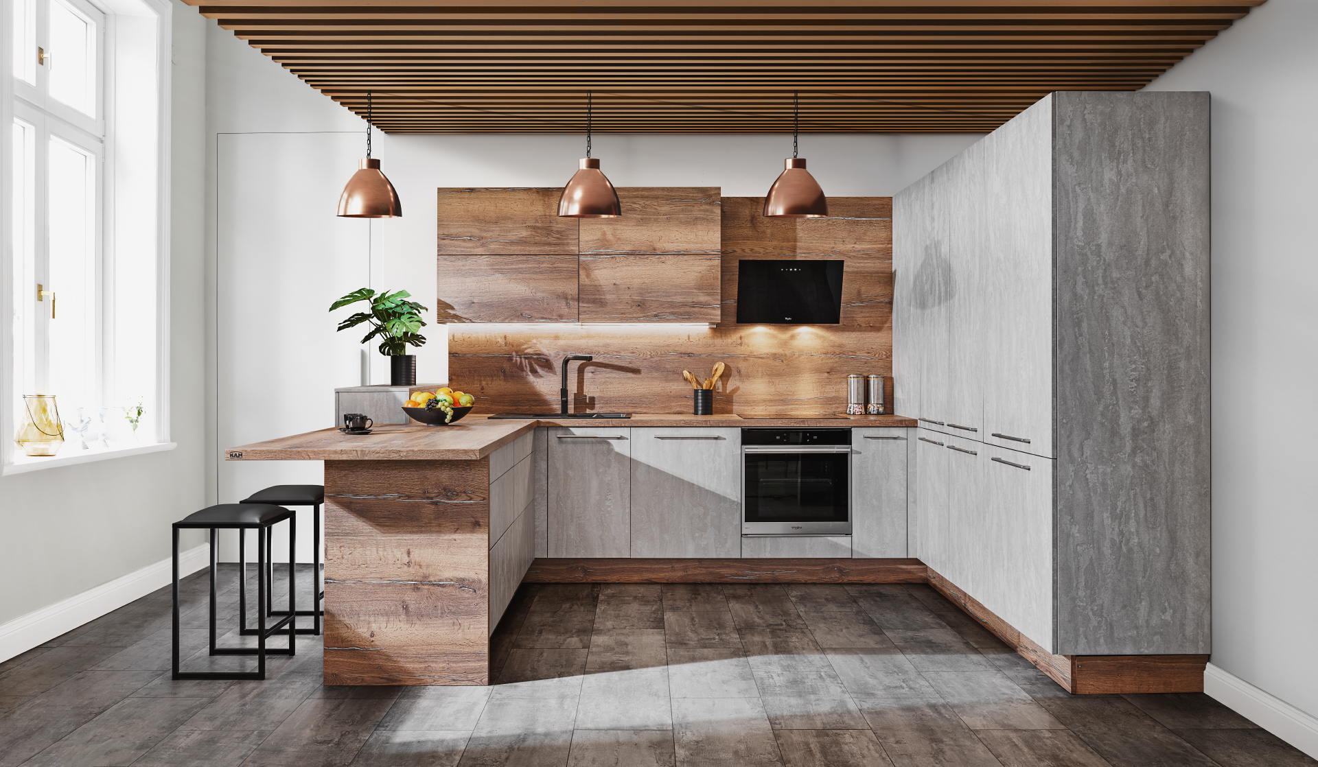 Jeżeli zależy nam na wyeksponowaniu uchwytów i podkreśleniu ich dekoracyjnej roli, wybierzmy modny i gustowny kolor, jak eleganckie i stylowe złoto lub nowoczesną i wyrazistą, matową czerń. Efektownie będzie wyglądała w postaci uchwytów krawędziowych zintegrowanych z obrzeżem okalającym front w kontrastowym dekorze. To nowa koncepcja frontu, dostępna w ofercie firmy KAM, w której zrównoważono aspekty użytkowe z atrakcyjnym wzornictwem.