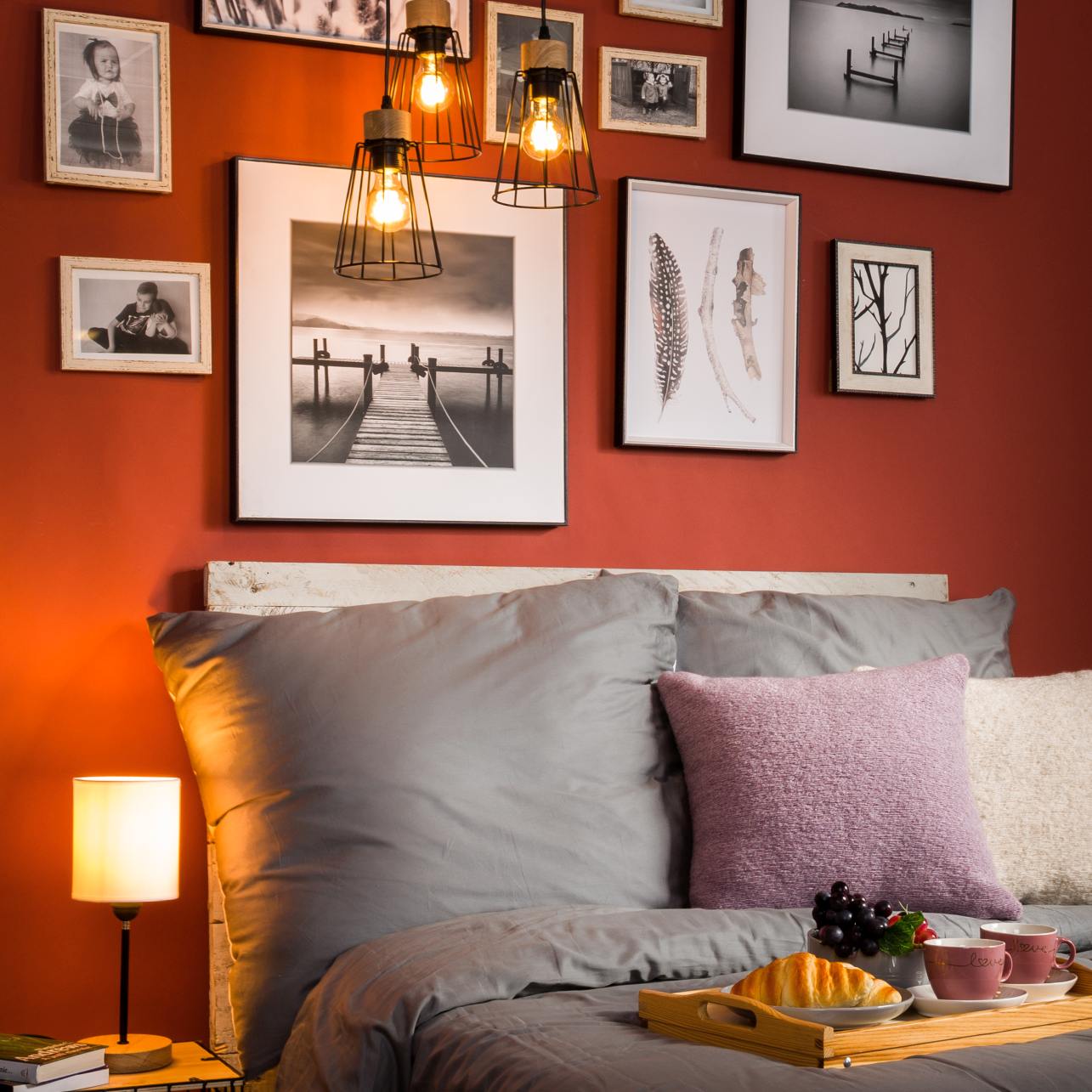 Jako żywy, dodający pomieszczeniu przytulności kolor, terakota świetnie sprawdzi się na ścianach sypialni.