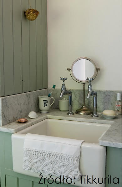 Niezwykle efektownie będzie się ona prezentować na tle ścian pokrytych farbą Tikkurila Luja 7 w kolorze M348 i doskonale wpisze się w melancholijny klimat łazienki bazującej na wyszukanych, stonowanych zieleniach.