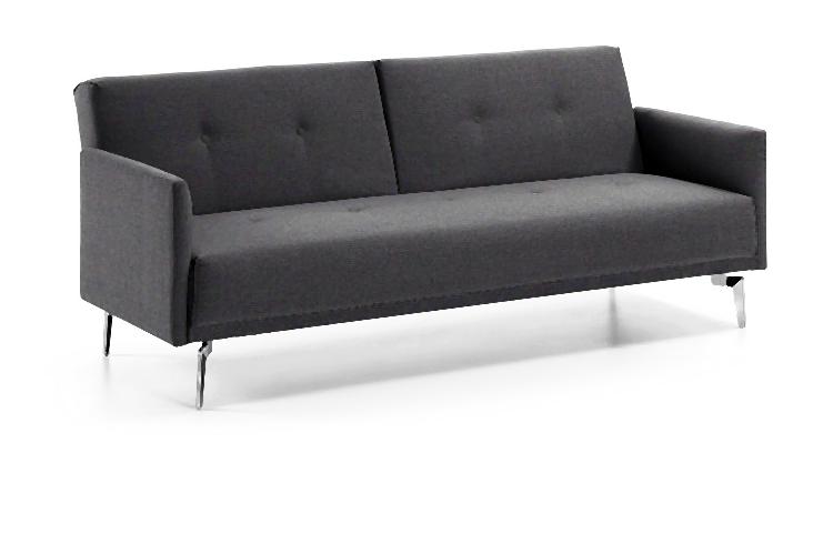 Kanapa Flora, która przeznaczona jest do salonu lub gabinetu, posiada obicie z tkaniny w kolorze jasno szarym oraz chromowane, wysokie nogi. Z racji tego wpasuje się do minimalistycznych pomieszczeń w jasnych odcieniach. Jest to mebel praktyczny, gdyż posiada rozkładany mechanizm typu Clic Clac. Za pomocą jednego kliknięcia wygodna sofa zmienia się w dwuosobowe łóżko.
